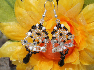 Seguendo lo schema pubblicato da Monica Vinci ne “Lo scrigno delle perle”, ho realizzato questi orecchini…