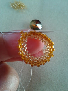 Il tutorial per incastonare un rivoli da 14mm a peyote è terminato, presto vi mostro il decoro a stella.